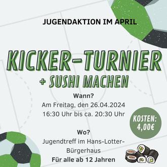 Jugendaktion im April: Kicker-Turnier & Sushi machen