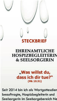 Ab Januar gibt es ein neues Angebot im „Treffpunkt Mitte“ (ehemals Milchhäuschen): Frau Christine Tiltsch steht als ausgebildete Seelsorgerin einmal im Monat für vertrauliche Gespräche zur Verfügung.