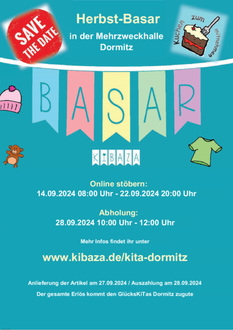 Weitere Informationen sowie die Anmeldung für die Verkäufer und der Verkauf finden Sie unter www.kibaza.de/kita-dormitz