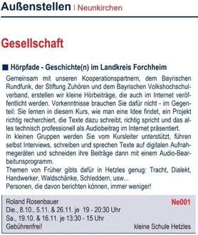 In diesem Zusammenhang auch ein Hinweis auf ein interessantes Angebot der VHS Neunkirchen