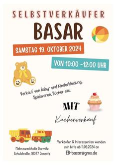 Am Samstag, 19. Oktober, wird von 10 bis 12 Uhr ein Herbst/Winter-Selbstverkäufer-Basar vom Elternbeirat der Grundschule Dormitz-Hetzles-Kleinsendelbach in der Dormitzer Mehrzweckhalle veranstaltet.
