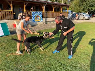 Am gleichen Nachmittag waren dann die Lehrhelfer Michael Lindner und Alexander Kunz für den IGP-Bereich Unterordnung und Schutzdienst zu Gast. Da hier Fragen, Diskussionen und praktische Übungen bis in den Abend hinein gingen, kann man davon ausgehen, dass durch das einfühlsame Vorgehen der beiden Lehrhelfer unsere Jugendlichen sehr viel Spaß hatten und sehr viel lernten. Beim Üben im Schutzdienst konnte dann der Jugendliche Fabian Schlimpert sehr viel Talent als angehender Schutzdiensthelfer zeigen. Er könnte möglicherweise in Zukunft in die Fußstapfen unserer beiden Lehrhelfer treten.
