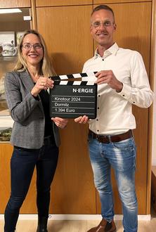 Sonja Olbrich, Betreuerin für kommunale Kunden der N-ERGIE, übergab die Spende vor Kurzem an Bürgermeister Holger Bezold. „Wir freuen uns, dass so viele Zuschauerinnen und Zuschauer zu diesem besonderen Filmabend mit buntem Begleitprogramm gekommen sind“, so Holger Bezold. „Vielen Dank der N-ERGIE für die sehr gelungene Veranstaltung und den Vereinen für die Bewirtung – das Engagement hat sich doppelt gelohnt, denn die Einnahmen aus den Eintritten werden nun für unsere Jugendarbeit verwendet.“