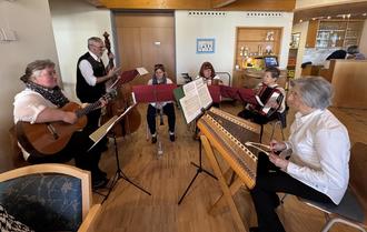 Zum guten Gelingen der Veranstaltung trug auch die Familienmusik Fischer bei, die mit Gitarre, Hackbrett, Kontrabass und zwei Akkordeons den musikalischen Rahmen schuf (siehe obiges Foto). Ebenso der Moderator Günter Doriat, der mit launigen Worten durch den Vormittag führte. - Auch das Team des Seniorenzentrums sorgte für die Gäste mit dem gewohnten Frühstücksbuffet und Frühlingsbrötchen.