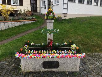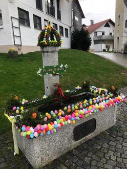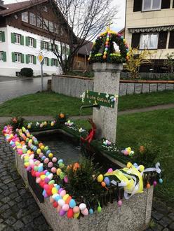 Ein großer Dank geht an Anne Nadler, die hier seit Jahren sehr viel Zeit, Kreativität und Liebe einbringt. Das Resultat ist großartig: Durch den gelungenen Kontrast zwischen Buchs und bunten Eiern sowie der wunderbaren Krone, zieht der Brunnen nun viele Blicke auf sich und lässt viele sehr positive Kommentare, ja Begeisterung aufkommen.
