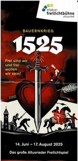 Mit einem großen Klassiker leistet die Freilichtbühne Altusried ihren Beitrag zum Gedenkjahr „500 Jahre Bauernkrieg“. Altusried erwartet Tausende Besucher in der Zeit von 14. Juni bis 17. August 2025. Die über 400 Teilnehmer zeigen in einer beeindruckenden Inszenierung diesen Kampf ihrer Vorfahren um ihr Leben und ihre Zukunft. Im Mittelpunkt des Geschehens stehen vier Geschwister aus einer leibeigenen Bauernfamilie, die in den Strudel der historischen Ereignisse geraten.
