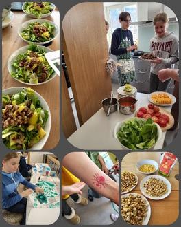 Beim Kochkurs wurde geschnibbelt, frittiert, gebacken, gerührt und alles natürlich am Ende probiert! So konnte die ganze Gruppe täglich ein umfangreiches 3-Gänge-Menü verspeisen, welches sie selbst zubereitet haben. Alle 12 Teilnehmer und Teilnehmerinnen konnten sich als Erinnerung ein selbst gestaltetes Rezeptheft, mit allen in dieser Woche zubereiteten Gerichten mit nach Hause nehmen.