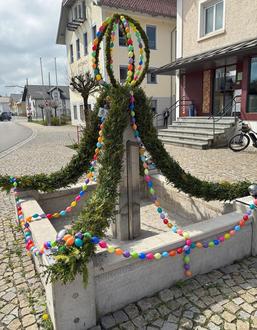Ein großer Dank geht an unseren Gartenbauverein für die Gestaltung des herrlichen Osterbrunnens. Mit großem Aufwand und Mühe, mit viel Liebe und Gespür haben sich die Damen und Herren unter Leitung der Vorsitzenden Daniela Lingenheil der Verzierung unseres Brunnens angenommen. Das Resultat ist großartig: Durch den gelungenen Kontrast zwischen Buchs und bunten Eiern, der in eine Krone mündet, zieht der Brunnen nun viele Blicke auf sich und lässt viele sehr positive Kommentare, ja Begeisterung aufkommen.