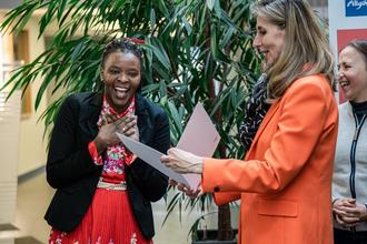 Für die beiden Sachbearbeiterinnen des Amtes für Migration, Vanessa Saltarelli und Anja Burger, stellte die Einbürgerungsfeier den Abschnitt eines Integrationsprozesses dar, den sie von Anfang an begleitet haben: "Sehr viele der Menschen, mit denen wir in den vergangenen Jahren auf ihre Einbürgerung hingearbeitet haben, kamen auf uns zu und haben sich für die gute Zusammenarbeit bedankt", so die beiden Mitarbeiterinnen der Kreisverwaltung. "Es ist toll, so viel Wertschätzung von jemandem zu bekommen, für den man Teil seines Lebenswandels war. Und es ist ein großes Lob für die eigene Arbeit.