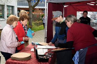 Stichwortartig aufgezählt bedeutete das: Fliegen mit der Luftsportgruppe und der Luftrettungsstaffel, Energieteam mit Windrad, Sonnenenergie und Solarkataster, Sport mit Kegeln, Schießen, Turnen und Mountainbiken, Fair Trade mit der Kirchengemeinde Hl. Geist und unserer Fair Trade Arbeitsgruppe, der unübersehbare Innovationstruck der Fa. Sonepar, Internationales mit unserem Partnerschaftsverein, Kinderaktionen vom Gartenbauverein, der Freiwilligen Feuerwehr und dem Kinderhaus Christophorus, das Wildmobil des Kreisjagdverbands, Mobilität mit dem E-Carsharing der Fa. Sirch und der Mitfahrzentrale der Regionalentwicklung Oberallgäu, Oldtimertreffen incl. Ausschank mit dem Duracher Duranand und viel Regionales beim Essen und Trinken mit dem Bauernverband, der das Sortiment des Duracher Schlachthäusle im Angebot hatte, dem VdK mit Krautschupfnudeln, den Kemptner Wald Weible, die für die Getränke verantwortlich waren, der Silvia Weixler mit Pizza und dem Oyer Kässpatzenmobil. Stark nachgefragt waren auch die leckeren Kuchen und Torten des Duracher Frauenbunds.