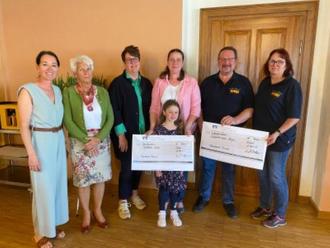 Spendenschecks von je 900 € wurden von den beiden Hauptverantwortlichen für die Adventskranz-Aktion an den "Wünschewagen Allgäu" und an "Pro Palliativ Allgäu" übergeben.