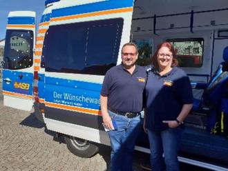 In der Pause konnte auf dem Parkplatz der Wünschewagen (auch von innen) besichtigt werden. Im Bild die beiden ehrenamtlichen "Wunsch-Erfüller" vom Arbeiter-Samariter-Bund, die auch sämtliche offene Fragen beantwortet haben.