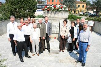 Bild: Bodelsberger Reiseteilnehmer in Corrubbio am Denkmal.