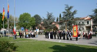 Aus Anlass des Jubiläums „65 Jahre Kriegsende“ wurde eine Abordnung aus Durach/Bodelsberg zum offiziellen Gedenken am 25. April 2010 nach Corrubbio in der Gemeinde San Pietro in Cariano eingeladen. Mit dabei waren der Bürgermeister der Duracher Partnergemeinde Faver im Cembratal, Oswaldo de Crisci, die Musikkapelle Durach, Fahnenabordnungen aus Bodelsberg, Angehörige der Familie Ostheimer, Mitglieder des Veteranenvereins und einige Bürger aus Durach und Bodelsberg. Die Delegation nahm an der Feierstunde am Denkmal in der Ortsmitte von Corrubbio teil. Der Name Georg Ostheimer ist mit den weiteren bei der Sprengung tödlich Verunglückten in Stein gehauen. Alle waren sich einig: Georg Ostheimer hat gezeigt, dass Mitmenschlichkeit und Mitgefühl auch in Kriegszeiten gelebt werden kann. Er hat Mut und Zivilcourage bewiesen und seine Freundschaft mit einer italienischen Familie waren ihm wertvoll und wichtig. Sein Handeln, das er selbst mit dem Leben bezahlt hat, ist ein gutes Beispiel und Vorbild. Im Anschluss besuchte die Delegation den Soldatenfriedhof „Costermano“ am Gardasee, auf dem Georg Ostheimer mit weiteren 24.000 gefallenen deutschen Soldaten bestattet wurde. Aus Anlass der Ereignisse am Kriegsende in Corrubbio wurde von Luisa Ferrari und Carlo Battistella ein Buch mit dem Titel „La luna si oscura“ („Als der Mond verdunkelte“) veröffentlicht. In diesem Buch sind einige Bilder vor und nach der Explosion sowie ein Foto von Georg Ostheimer zu sehen, außerdem sind die Interviews der Zeitzeugen von damals enthalten. Foto: Gemeindearchiv