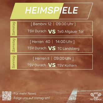 Eine Übersicht aller Begegnungen sowie Aktuelles aus dem Vereinsgeschehen ist auf unserem Instagramaccount (TSV_Durach_Tennis) zu finden.