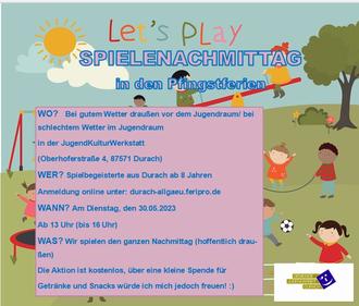 In den Pfingstferien gibt es einige tolle Aktionen für euch! Die Anmeldung hierfür läuft wie immer online, unter www.durach-allgaeu.feripro.de