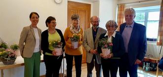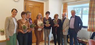 Für 40 Jahre v.l.n.r. Diem Manuela (Vorstandsteam), Mogl Renate, Martin Resi, Pfarrer Gomm, Leitner Traudl, BGM Hock. Nicht mit dabei, Göser Resi, Kiechle Marianne, Asam Barbara
