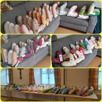 Ein herzliches Dankeschön an unsere Kerstin, die von einem Teil des Erlöses vom Advents-Märktle 2022 - wie damals beschlossen - Baumwoll-Stoffe, Nähzutaten und das besondere Füllmaterial besorgt hat und das gesamte Projekt perfekt vorbereitet und organisiert hat.