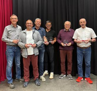 Vlnr: Vorstand Kurt Keßler, geehrte Mitglieder, Markus Domschky, Helmut Mayer, Hubert Gast, Willi Bloch, Toni Zammataro