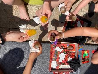 Am ersten Tag des Ferienprogramms verbrachten wir einen schönen Spielenachmittag (dank des sonnigen Wetters draußen), mit Spielen wie Federball, Klettball, Speedminton, Straßenkreide malen und einigen Runden „Wer bin ich?“ und „Ubongo“. In einer kleinen Spielpause, genossen wir alle ein leckeres selbstgemachtes Eis am Stiel.