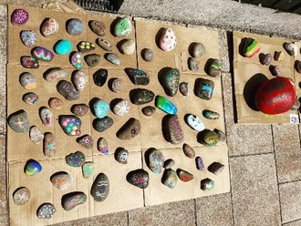Am 1. Juni bemalten 14 Kinder im Alter von 8-12 Jahren jede Menge Steine mit bunten Acrylstiften. Diese wurden dann mit Klarlack besprüht und verzieren nun den Weg zum Jugendtreff in der Jugendkulturwerkstatt und können dort gerne jederzeit bestaunt, sowie erweitert werden. Wenn ihr also noch weitere kleine Kunstwerke habt, die ihr in unsere bunte Steinkette einreihen wollt, nur zu! Ganz wichtig ist uns jedoch, dass die Steine liegen gelassen werden, da sie mit sehr viel Liebe zum Detail entstanden sind! Danke euch????