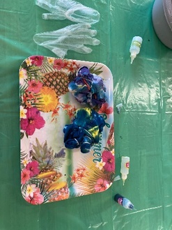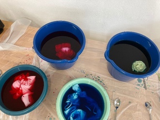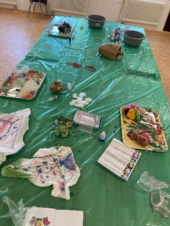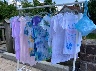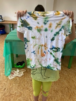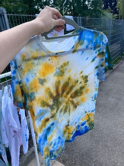 In der zweiten Ferienwoche wurde es dann noch bunter! Ihr denkt das geht nicht? Na dann schaut euch diese tollen Bilder an! Es sind so wunderbare Unikate entstanden! Alle Kinder hatten sehr viel Spaß beim Ausprobieren mit den Batikfarben.