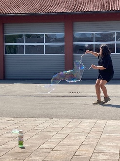 Die Wartezeiten, in denen die Farben einwirken mussten, haben wir mit Riesen-Seifenblasen und dem ein oder anderen Spiel verbracht: