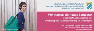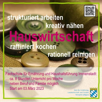 Dann ist die einsemestrige „Fachschule für Ernährung und Haushaltsführung“ an der Landwirtschaftsschule, Abteilung Hauswirtschaft, Immenstadt genau das Richtige für Sie.
