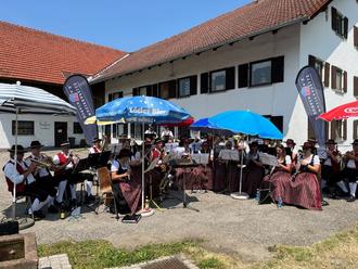Die Musikkapelle unter Leitung von Roland Gruber eröffnete - in Anwesenheit von Bürgermeister Gerhard Hock und Gattin - mit einem Standkonzert den außergewöhnlichen Tag