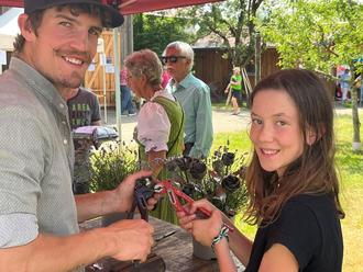 Altes handwerkliches Können wurde gezeigt mit dem Edelweißsticken von Hosenträgern, aus Zweigen gebundene Besen und Metallrosen aus der kleinen, eigens aufgebauten Schmiede