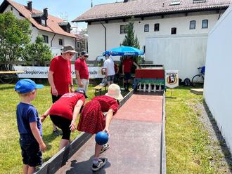 Der Kegelclub Goldener Kranz erfreute mit der Holzkegelbahn, die Duracher Goislschnalzer zeigten ihr Können, ebenso die neue Trachtengruppe „Dengelstoiner“