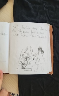 Am Nachmittag war dann das Basteln eines Buches zum Aufschreiben aller Erlebnisse, der ausgewählten „Ehren“ (siehe 1. Bild oben) und allem, was für die Kinder noch wichtig war, auf dem Programm. Am Nachmittag kamen die Kids ihrem Ziel die Schemen zu bekämpfen noch einige Schritte näher. Wenn du mehr über die Geschichte wissen möchtest, sei doch beim nächsten Mal einfach selbst mit dabei!