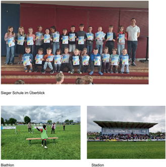 Bei der abschließenden Biathlonteamstaffel kam im Stadion große Stimmung auf. Aus jeder Klasse liefen die zwei schnellsten Mädchen und zwei schnellsten Jungen im Team gegen die Kinder aus den Parallelklassen. Jeder Starter absolvierte eine Laufrunde und musste anschließend am Wurfstand mit Bällen auf Zielscheiben werfen. Bei Fehlwürfen drohten Strafrunden. Unter tosendem Applaus der Schulgemeinschaft kamen die Läufer erschöpft und stolz im Ziel an.