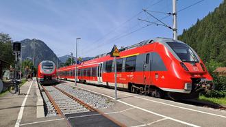 Umstieg in Pfronten-Steinach vom Diesel- in den Elektro-Triebwagen