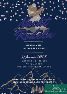 Toni wird mit euch den ersten Ausflug im neuen Jahr machen. Es geht nach Fischen zum Nachtrodeln. Am Freitag, den 31.Januar um 16.00 Uhr starten wir in Richtung Stinesser Lifte zum Rodeln. Weitere Infos und die Anmeldung findet ihr wie immer unter www.durach-allgaeu.feripro.de