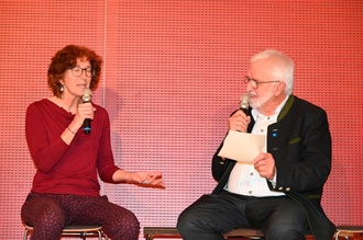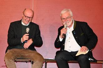 Im zweiten Teil der Auftaktveranstaltung in der vollbesetzten Aula interviewte Vorsitzender Herbert Seger verschiedene Akteure zum Gedenkjahr.