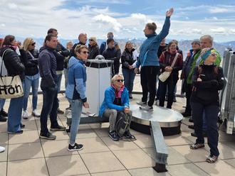 Dazu ging's auf eine besondere "Unternehmerkreis vor Ort"-Veranstaltung, nämlich auf Deutschlands höchsten Gipfel, die Zugspitze. Am 18.07. machten sich 50 Mitglieder und Partner auf und konnten nach der atemberaubenden Seilbahnfahrt traumhafte Ausblicke in sonniger Höhe genießen. Das Highlight der Veranstaltung war die exlusive Führung durch das Schneefernerhaus, die Höhen-Umweltforschungsstation am Rande des Zugspitzplatts. Wir durften uns in den alten Tunnel, in dem Permafrost-Forschung stattfindet, ein paar Meter hineinwagen. Auf den verschiedenen Terrassen wurden uns mehrere Forschungsprojekte vom "Gewicht" der Zugspitze über Pollenkonzentration, Insektenvorkommen bis zu Radioaktivität erläutert - faszinierend und beeindruckend, was dort alles erforscht wird.