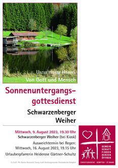 | 19.30 Uhr | Sonnenuntergangsgottesdienst, Schwarzenberger Weiher |