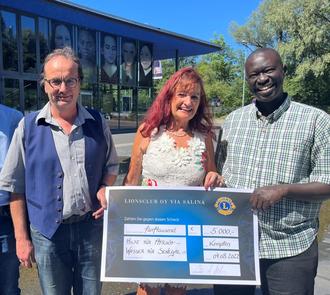 v.l. August Braun Vorsitzender Verein „Wasser für Senegal“, Frau Dr. Gabriele Gaschler vom Lyons-Club und Rahim Sall aus Senegal.