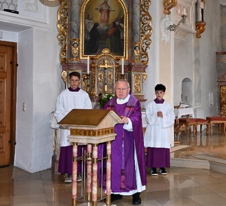 Ein klares Wort sprach Pfarrer Drischberger in seiner Predigt aus: „Dass Teile des Klerus maßgeblich an der Leibeigenschaft, Zinspflicht und Willkür der Herrschenden beteiligt waren, muss uns als Kirche zutiefst beschämen. Gerade die Fürstäbte damals spielten eine unrühmliche Rolle. Alledings zählten zu den Gerechten damals ein Franziskus von Assisi, die Hildegard von Bingen und auch die in Durach verehrte Gertrud von Helfta, die den Päpsten ins Gewissen redeten.“ Die Mission heute sei der Einsatz und die Sorge für Gerechtigkeit. „Was ihr dem geringsten Menschen tut, das habt ihr mir getan!“ „Wenn wir das tun, war das Lebensopfer unserer Vorfahren vor 500 Jahren nicht umsonst“, so Pfarrer Drischberger.
