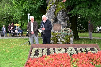 Dort sprachen Bürgermeister Gerhard Hock und Altbürgermeister Herbert Seger Gedenkworte.