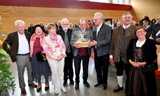 v.l. Sonja Seger, Altlandrat Gebhard Kaiser, MdL Joachim Konrad, Herbert Seger rechte Seite v.l. Reinhard Baumann und Bürgermeister Gerhard Hock mit Gattinnen
