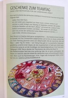 Für unser Team gab es zum Schluss dieses Jahres noch eine besondere Glücksbohne: Wir sind im Jahrbuch 2025 von Franz Kett (dem Urheber der ganzheitlichen und sinnorientierten Pädagogik) mit einem Beitrag aus unserer Einrichtung. Er begleitet unser pädagogisches Arbeiten seit über 30 Jahren. Letztes Jahr ist Franz verstorben, doch sein Sohn lässt diese wertvolle Arbeit weiterleben.
