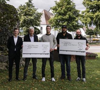Die Organisatoren des diesjährigen Duracher Laufs, vertreten durch Alex Bögel und Moritz Schaftroth, haben am vergangenen Freitag insgesamt 2.000 € an Duracher Belange gespendet. 1.300 € gehen an den Duracher Hilfsfonds und 700 € an die Freiwillige Feuerwehr Durach. Bürgermeister Gerhard Hock, Kommandant Matthias Hauser und Vorstand Stefan Heinzelmann freuten sich über diese Zuwendung und bedankten sich bei den beiden Überbringern.