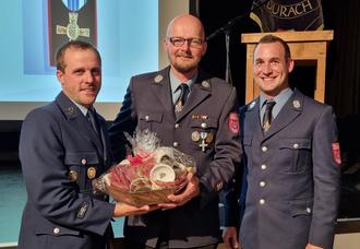 v.l. 1. Vorsitzender Stefan Heinzelmann, Markus Haslach, Stv. Kommandant Timo Weber