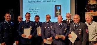 Zusammen mit dem 1. BGM Gerhard Hock und KBR Michael Seger nahmen die Verantwortlichen im Anschluss zahlreiche Ehrungen vor. Eine staatliche Ehrung für 25 Jahre Feuerwehrdienst konnten Florian Kling und Jürgen Brennauer, für 40 Jahre Thomas Hörmann, Manfred Neher und Helmut Wirth entgegennehmen. Eine Ehrung für 10 Jahre aktiver Feuerwehrdienst wurde Maximilian Immler, für 30 Jahre Markus Wehrmeister überreicht. Ein besonderer Dank ging an Haslach Markus, der nach langjähriger Dienstzeit, u.a. als Jugendwart, Gruppenführer und stv. Kommandant, in den passiven Dienst wechselt.