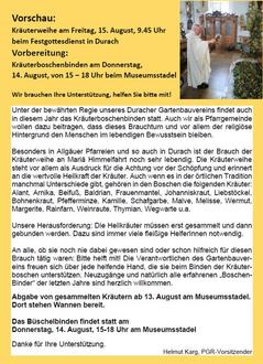 Hauptbüro Durach, Kirchenweg 3, Telefon 0831 561290