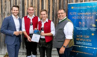 Der Sternenhimmel Allgäu e.V. unterstützt regionale, karitative und soziale Einrichtungen sowie Projekte aus den Bereichen Bildung und Jugendarbeit, Integration und Soziales, Vereinswesen und Kultur sowie Gesundheit und Vorsorge. Insgesamt werden dieses Jahr 60.000 Euro im gesamten Allgäu ausgeschüttet. In Durach hat Sternenhimmel-Beirat Simon Gehring, zusammen mit dem 1. Vorsitzenden Ulrich Geiger und dem 2. Vorsitzenden Alexander Geiger, die Schecks an fünf Projekte aus der Region Allgäu überreicht. Für die Beschaffung von Trachten für Kinder erhielt der Trachtenverein Schöllang 1.000 Euro. Weitere 1000 Euro erhielten die Musikkapelle Durach für Nachwuchsarbeit und zur Trachtenbeschaffung, die Bläserklasse der Mittelschule Pfronten (500 Euro), das Euregio-Blasorchester EBO für ein Konzertprojekt (1000 Euro) und die Kreis-Jugendfeuerwehr Oberallgäu für ein Filmprojekt zur Nachwuchswerbung (2.500).