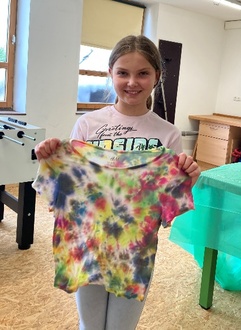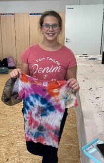 Am Dienstag wurden dann in der Werkstatt der Jugendkulturwerkstatt bunte Textilien gebatikt. Von T-Shirts bis Socken, einer Decke, Tops und sogar ein Mäppchen, war alles mit dabei. Es sind tolle Unikate entstanden! Aufgrund der hohen Nachfrage zum Batiken wird spätestens in den Herbstferien ein weiterer Batik-Workshop stattfinden. Ich halte euch hierzu auf dem Laufenden!