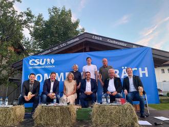 Beim diesjährigen Sommergespräch der CSU Durach gab es für die Besucherinnen und Besucher jede Menge interessante Informationen. Klaus Holetschek, der Bayerische Gesundheitsminister, stellte sich zusammen mit Mechthilde Wittmann, MdB und Thomas Kreuzer, MdL in der eineinhalb-stündigen Veranstaltung den Fragen des Moderators Richard Wucherer. Mit auf dem Podium die Landtagskandidaten Joachim Konrad, Kandidat für das nördliche Oberallgäu und Kempten, Ralf Arnold, der Listenkandidat für Lindau und Kempten sowie Lucas Reisacher, der Direktkandidat für den Bezirkstag.
